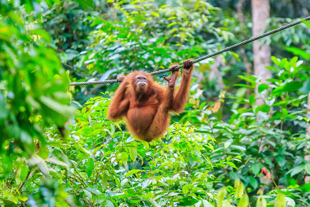 A tree-top walkway at the Sun Bear Conservation Centre allows a great vantage point to see rescued ex-captive sun bears, also being rehabilitated for a future life in the wild.