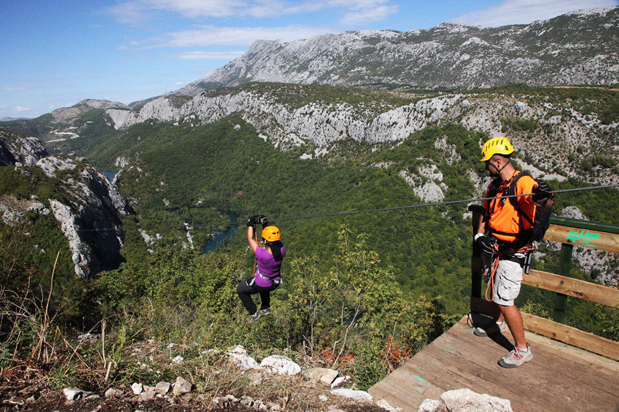 For today's activity we experience a bird’s-eye view of the untouched nature of the Cetina Canyon on an unforgettable ziplining experience. Eight ziplining cables link together in stages to descend the coastal mountains near to Omis - an entire length of 2,100m. The longest wire is 700m and at every platform we can stop to enjoy a panoramic view of the stunning surroundings of Omis and Cetina.