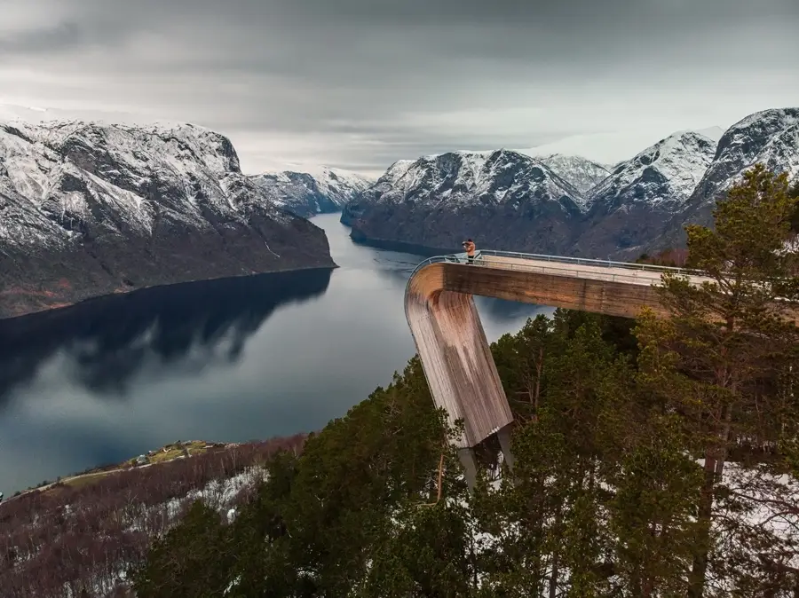 Then, choose to take a trip up to the Stegastein viewpoint, where you can enjoy spectacular views across the landscape or relax in a floating sauna.