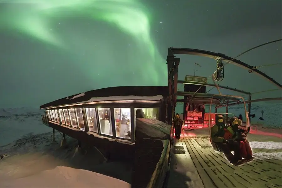 Travel by chairlift to this remote mountaintop viewpoint, where expert guides explain the science behind the Northern Lights and the conditions that make Abisko one of the world’s best viewing locations. Spend the evening looking for aurora sightings in the Arctic sky.